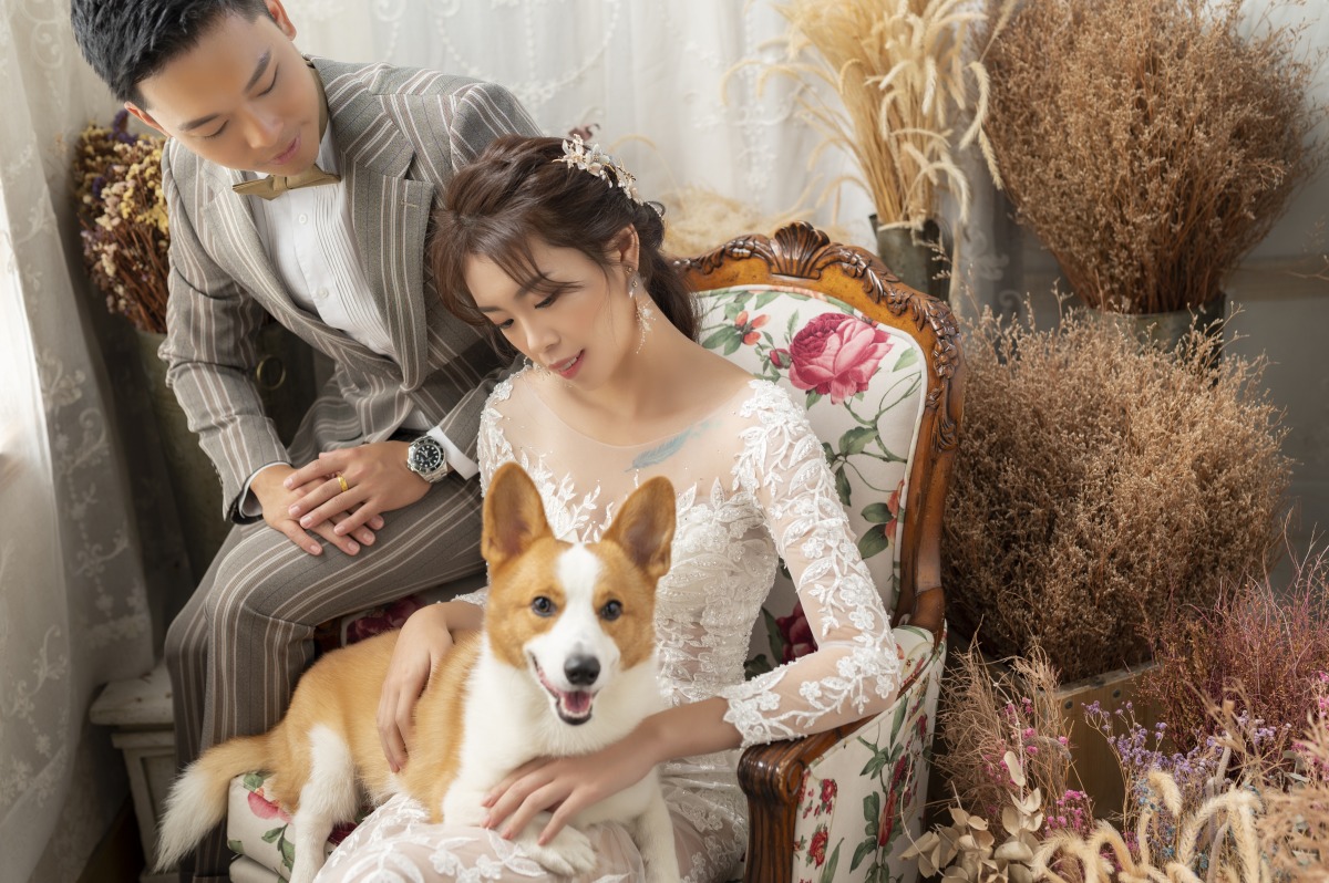 因為我們還有帶狗狗一起入境,所以其他3套都在棚內拍((如果可以我想都在棚內拍攝,場景超多,我要的風格都有~完全適合我這種怕麻煩的個性