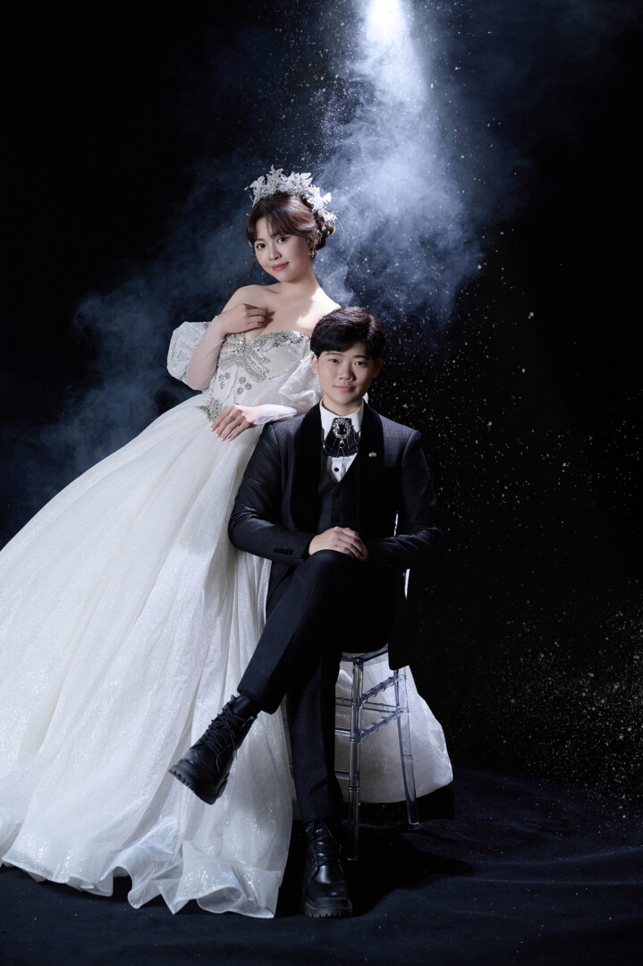 【妝髮造型】 這次的妝髮造型師是瑀玲老師(造型總監),親切又會鬧,據說和我們相處這場,是難得會放飛自我的她🤣 瑀玲老師幫我們打造的每一套造型都非常到位,妝容上乾淨又有層次 ✨星空的現代感時尚 老婆的禮服是可以變化的多穿款式,其中蝴蝶造型的垂鍊,和裙襬多層閃耀的紗,在不同角度光線折射下閃爍,像蝴蝶在星辰間飛舞🦋✨ 造型上老師私心拿出了當時新進還沒建檔的頭飾「水晶蝴蝶皇冠」更是幫老婆的仙女氣息點滿++ (我西裝肩上的金屬流蘇是自備的,對,我騷)