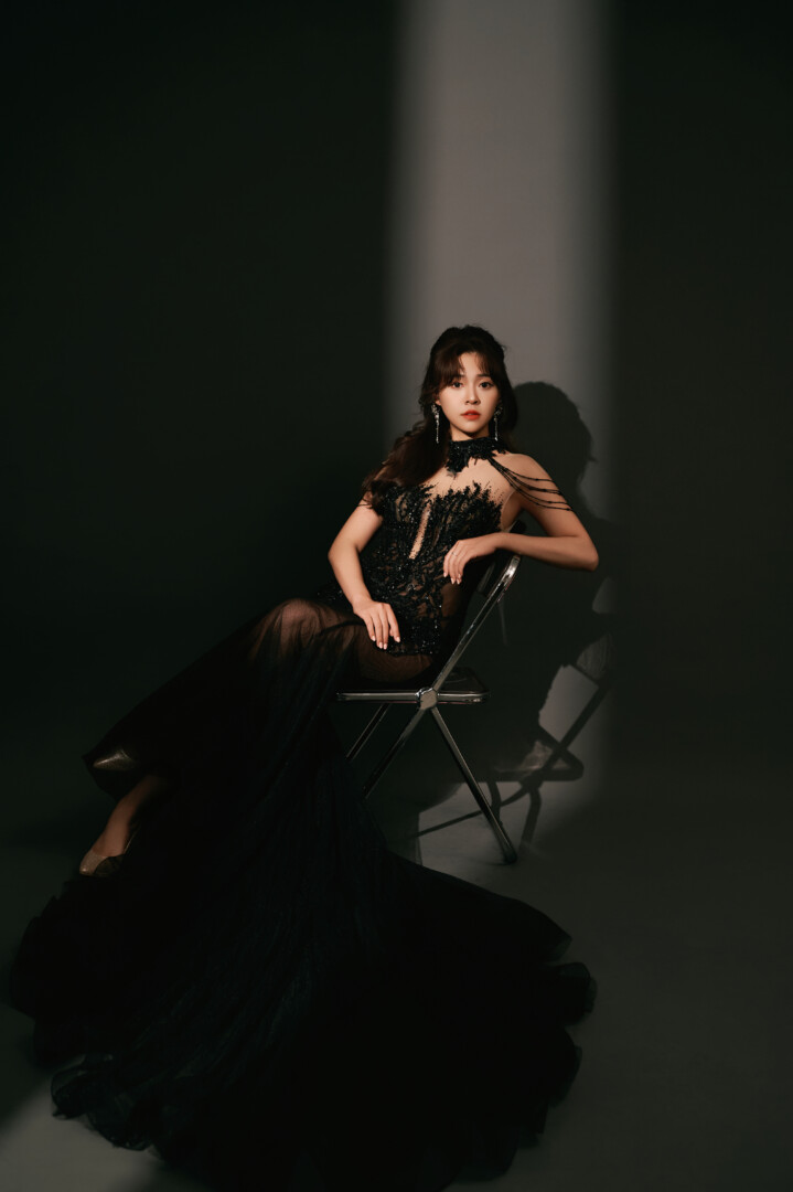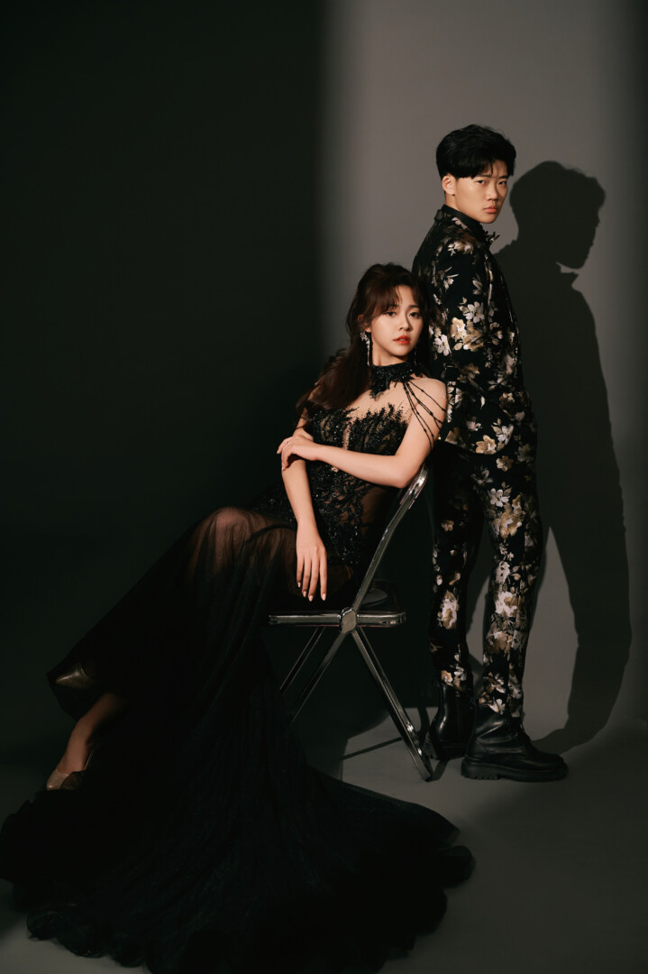 🌗 光影性感的秘密系列 老婆這套是我指定款🤤太美太辣太適合老婆🖤 服裝是以裸視感剪裁與貼膚布料為設計主軸,包覆身材曲線🌶️,店內還有其他色系,但黑色秘密是最有氣場的代表,搭配黑色羽毛大披肩,視覺震撼拉滿✅ 髮妝是半扎高馬尾,讓頭型呈現更立體的視覺效果,也修飾五官更顯精緻小巧,整體造型刻意不加頭飾,保持乾淨,讓焦點自然落在新娘的輪廓與氣場上🔥