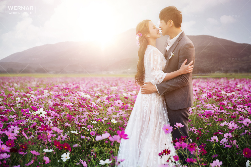 在浪漫花海中, 配上那一抹清新暖人的陽光, 帶著春天的浪漫的氣息, 給愛情一句完美的開場白…